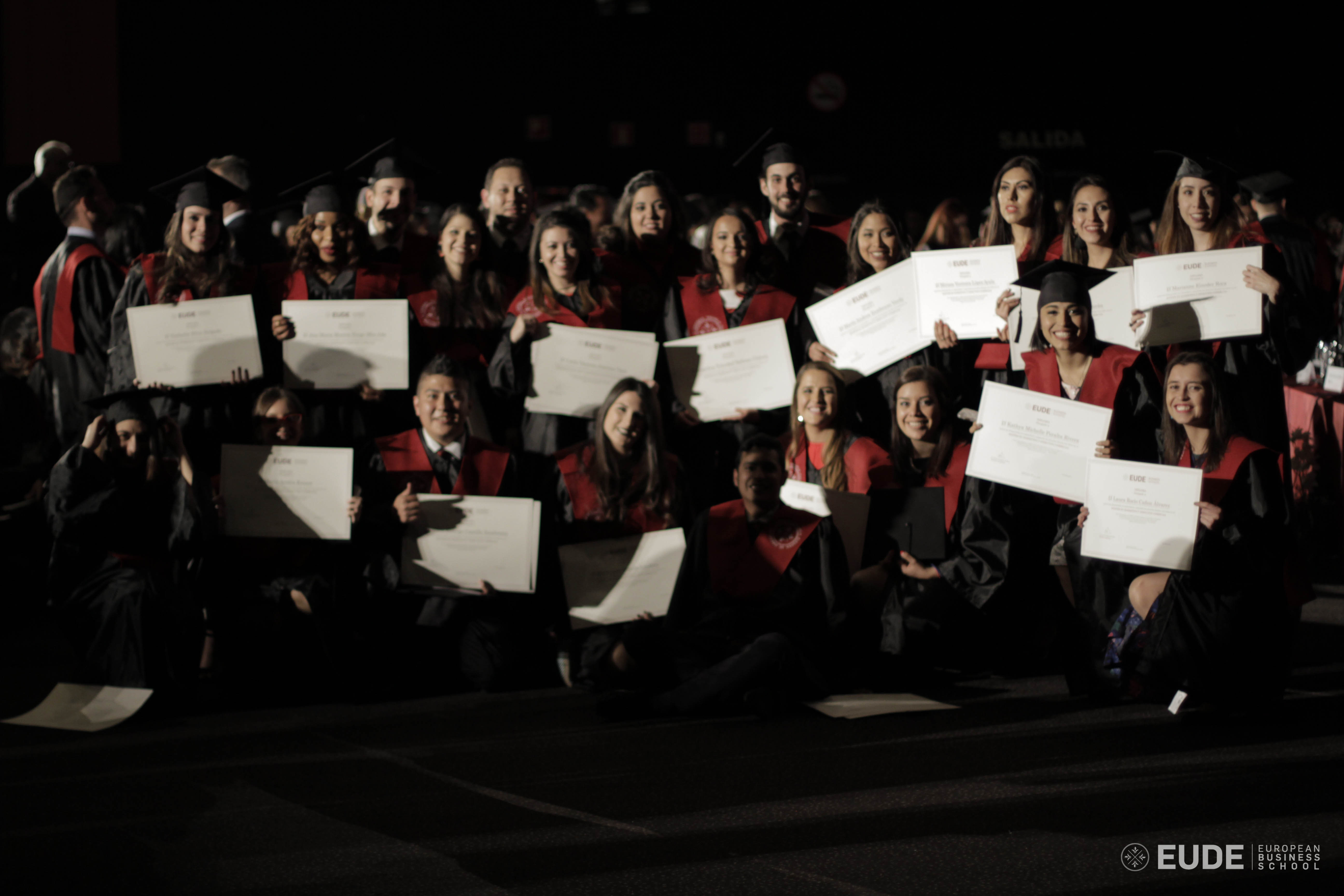 El pasado viernes 20 de Abril, se llevó a cabo la esperada ceremonia de graduación de EUDE Business School, donde los alumnos de los programas presenciales y online de MBA, Máster en Marketing y Dirección Comercial, Comercio Internacional, Recursos Humanos, Marketing Digital y Coaching recibieron su respectivo título de Máster. Además algunos de ellos fueron sorprendidos por reconocimientos como mejor expediente académico y mejores trabajos de final de Máster.